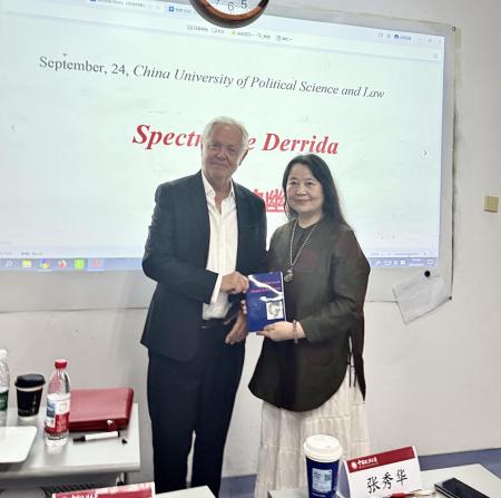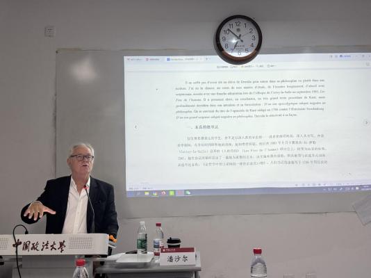 在建院20周年之际,为推动中西马的学术对话、深化西方马克思主义前沿问题的研究,2025年9月24日,马克思主义学院成功举办了第157期“新视野”系列讲座。本次讲座特邀法国著名哲学家布鲁诺·潘沙尔(Bruno Pinchard)担任主讲人,作了题为“德里达与法国马克思主义的遗产”的精彩学术报告。中国政法大学马克思主义学院张秀华教授主持,北京师范大学哲学学院徐克飞教授、中国政法大学马克思主义学院张杨副教授、王政副教授担任评论嘉宾,学院研究生及校内师生共同参与,现场讨论热烈、学术氛围浓厚。
